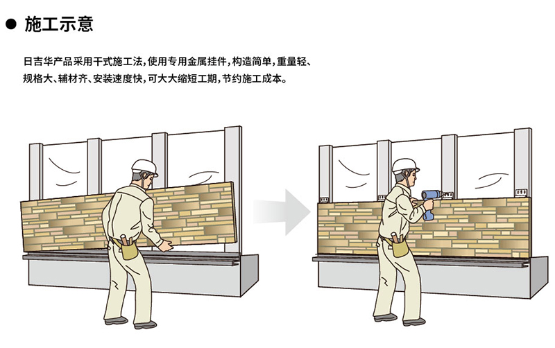 A9:日吉华产品采用干式施工法,使用专用金属挂件,构造简单,轻质高强,辅材齐全,安装速度快,可大大缩短工期,节约施工成本。