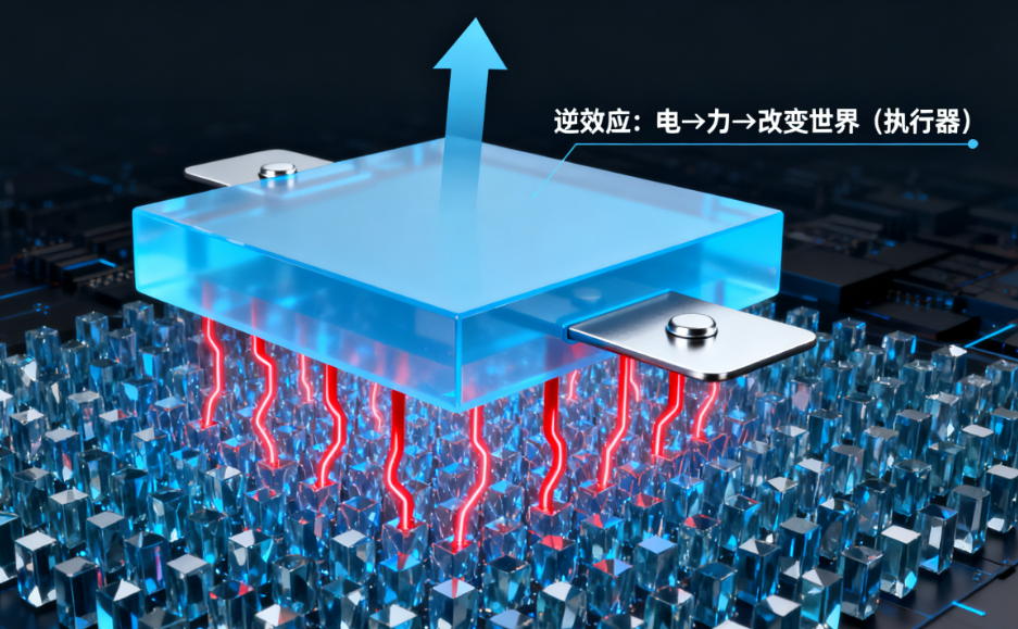 正压电效应和逆压电效应是一对可逆的能量转换过程,它们共同存在于同一块经过极化处理的压电陶瓷中。这使得压电陶瓷成为一种独特的双向换能器。