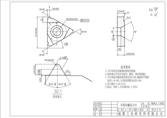 高精度与高耐用度,是刀具保障加工品质的关键。依据公制螺纹标准手册要求,刀具所有产品的关键尺寸精度均高于螺纹加工标准:齿高误差控制在 ±0.02mm,齿厚尺寸精度达 + 0.045/+0.01mm,半角误差为 + 15′/-25′,顶角 R 误差 ±0.02mm,转位精度可达 ±8′。在同种加工条件下,产品性能处于国内前列水平,对口进口产品的使用寿命可达 80% 以上,既能保证批量加工的一致性,又能降低企业的刀具更换成本,提升生产效率。