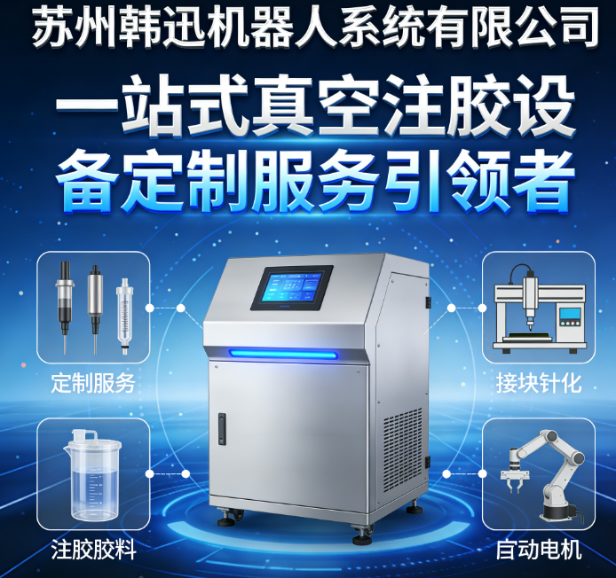 在精密制造领域,每一个气泡都可能意味着产品的失效,每一丝误差都可能带来巨大的成本损失。面对日益严苛的封装要求,传统手工灌胶工艺已难以满足现代制造业对精度、效率和一致性的追求。苏州韩迅机器人系统有限公司(下称苏州韩迅),作为一站式真空注胶设备定制服务的者,正以其创新的技术理念和完整的解决方案,重新定义灌封工艺的未来。