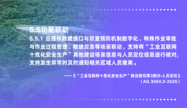 第五项标准的技术要求内容中明确提出:人员定位系统需支撑风险分区管控,并具备稳定 、可验证的定位精度能力。