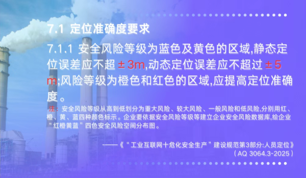 近日,国家应急管理部公布批准10项行业标准,其中在第五项《“工业互联网十危化安全生产”建设规范第3部分:人员定位》(AQ 3064.3-2025)中,该项标准以工程化视角,对定位精度、系统响应、稳定性、防爆适配等提出明确要求。