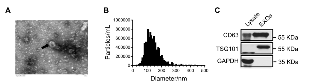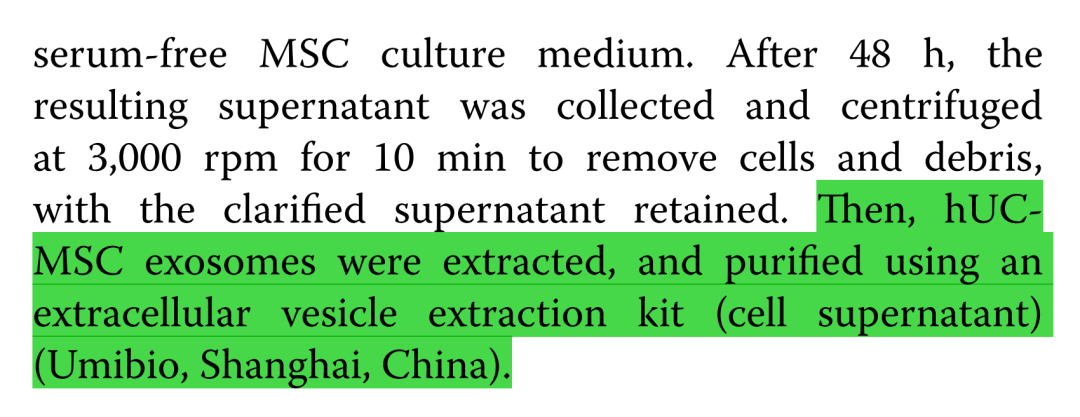 该研究中使用本公司的细胞上清外泌体提取纯化试剂盒(货号:UR52121)对人脐带间充质干细胞来源的EVs进行提取纯化,结果符合各检测指标要求,满足了客户下游实验需求。