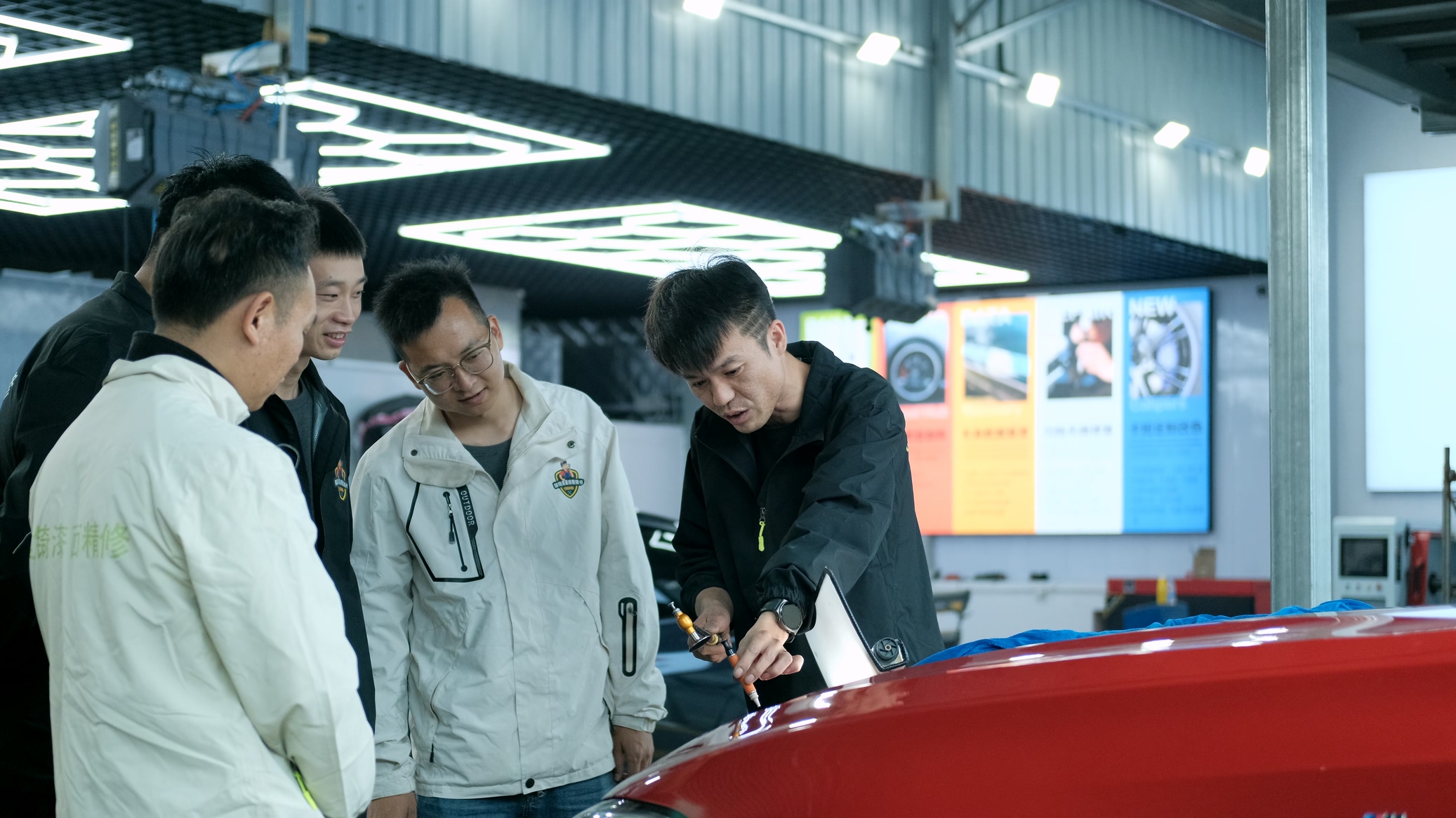 传统汽车漆面修复存在耗时长、色差大、成本高的普遍痛点,特别是局部损伤往往需要整件喷涂,造成严重的材料浪费和时间成本。辕锜品牌的漆面点噴精修技术通过局部点喷工艺,从根本上改变了这一现状。该技术依托自主研发专项权利材料与设备,配合专业清漆光油,能够实现局部损伤的无痕修复,确保修复部位与原漆高度融合。同时,专业固化设备大幅缩短了漆面干燥等待时间,明显提升了门店单工位产值,真正实现了降本增效的商业价值。