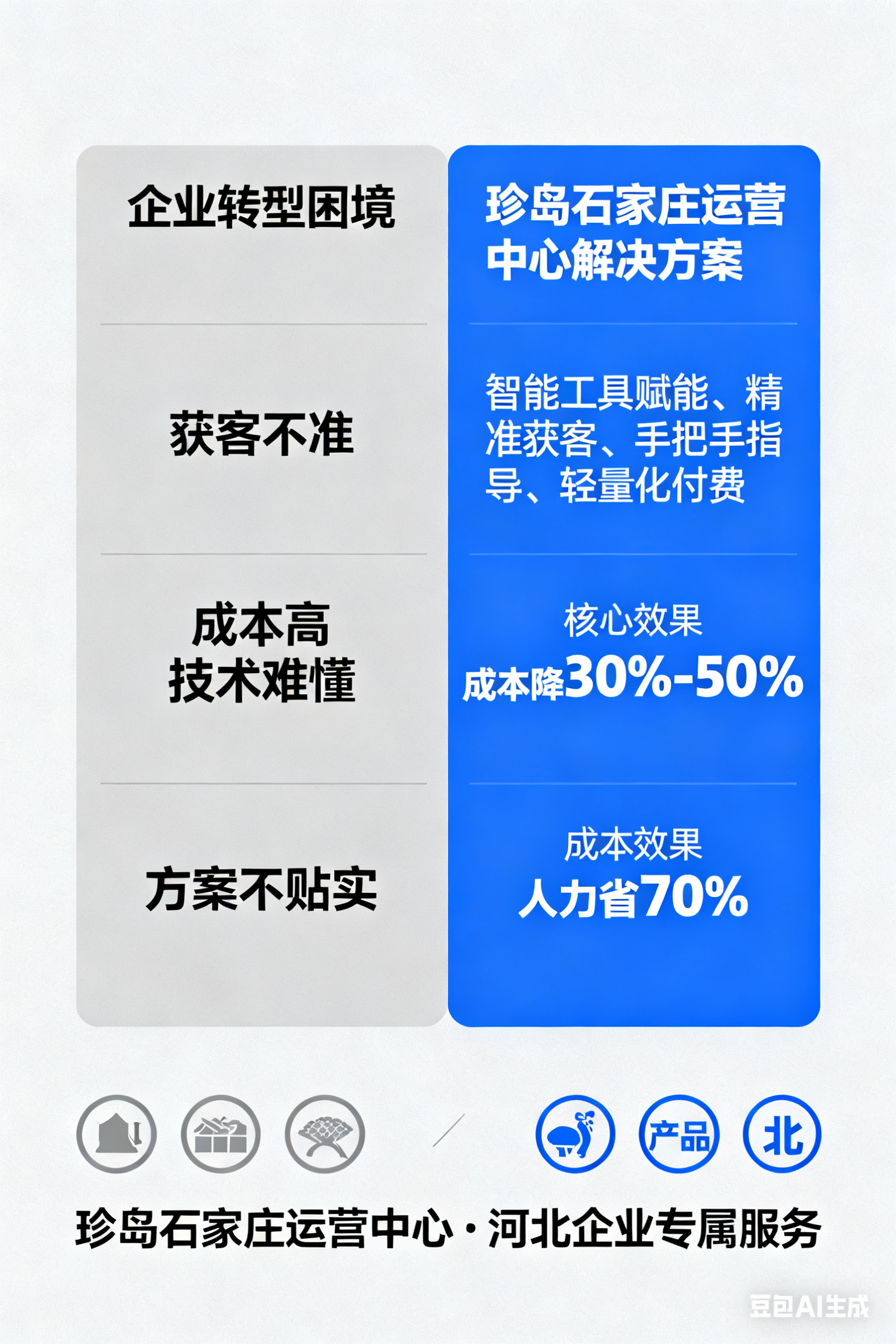 针对河北企业“缺技术、没团队”的痛点,珍岛石家庄运营中心打造轻量化智能工具矩阵,将复杂技术转化为企业易操作的实用功能,实现数字化转型零门槛启动: