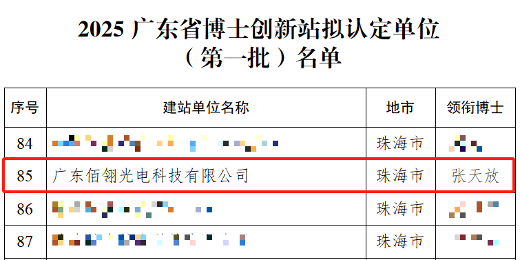 近日,广东省科学技术协会公布《2025年广东省博士创新站拟认定单位(第一批)名单》,经评审及公示,广东佰翎光电科技有限公司(以下简称“佰翎光电”)凭借扎实的研发基础、明确的技术攻关方向及完善的人才培育体系成功入选,标志着公司在高端人才引育、产学研协同创新领域迈出了里程碑式的一步,为分布式光纤传感技术的产业化发展注入新动能。