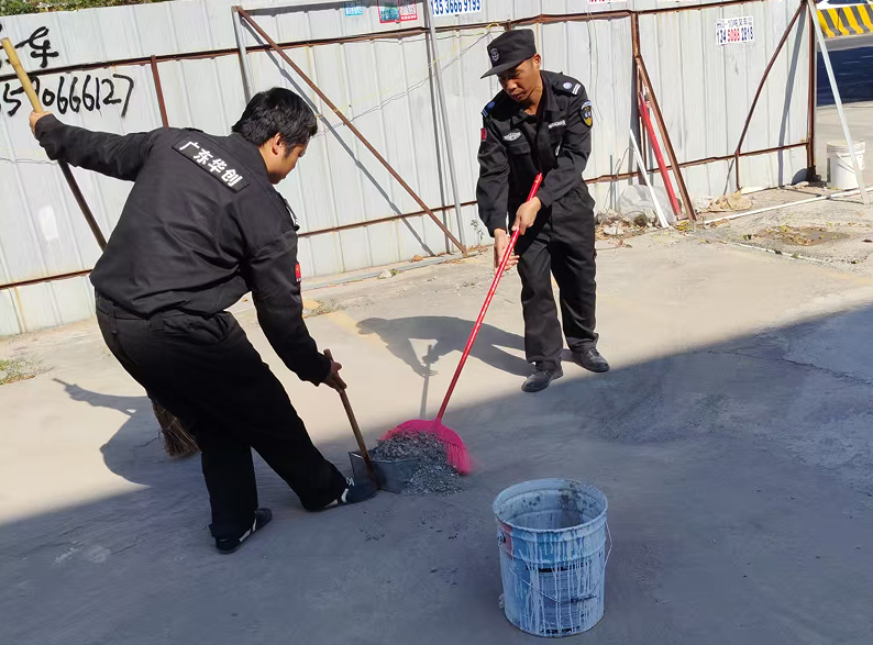 事实上,水泥残渣清理只是广东华创保安众多增值服务中的一个缩影。在其它服务点,广东华创保安还根据客户需求提供了多样化服务:有的协助管理访客系统,有的帮助维护停车秩序,有的定期检查消防设施,有的甚至协助组织应急疏散演练。