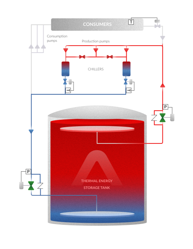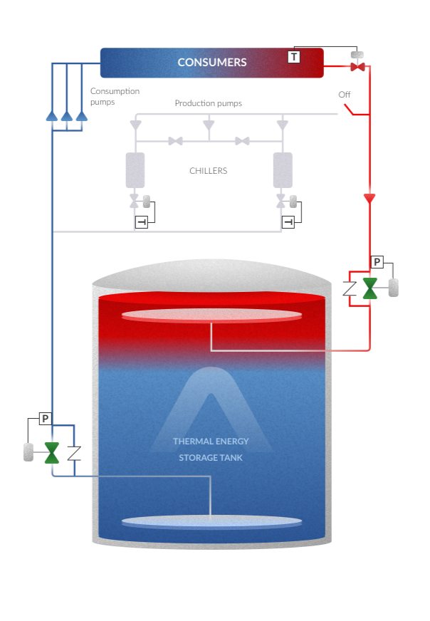 低谷时段集中储冷,高峰时段100% 由储罐供冷;