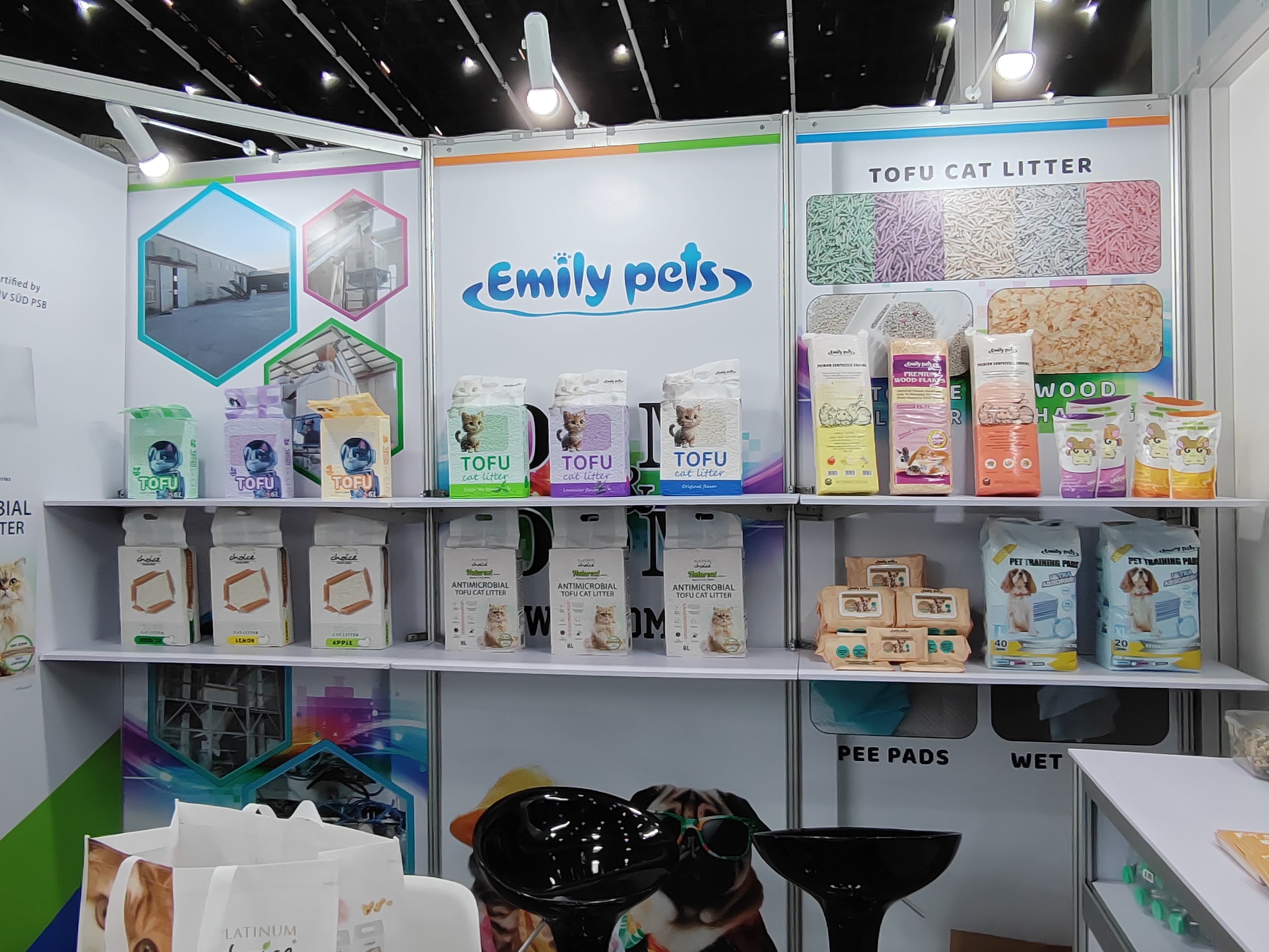 “我们每款产品都经过三重检测:原料重金属筛查、生产过程微生物监控、成品吸水结团测试。” 据企业参展负责人透露,其松木猫砂系列通过高温碳化技术解决了东南亚潮湿环境下的霉变问题,炫彩包装设计更贴合泰国年轻养宠群体审美,已通过跨境电商渠道完成市场验证。